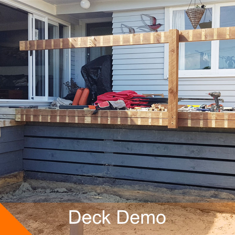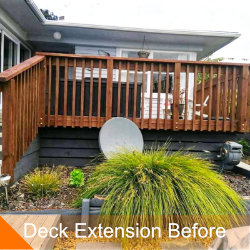 We had an LBP over see the install of this new double glazed ranch slider or sliding door, then we installed this ground level angled deck for access to the existing deck from the new door. We did all the work on the door, weather boards & the deck.